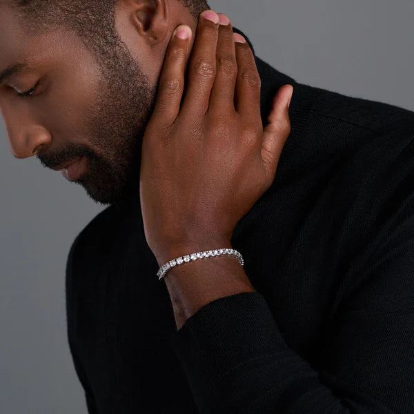 Introducing our stunning 5mm Silver tennis bracelet, the ultimate accessory to elevate any outfit. Crafted with the finest materials, this bracelet boasts unparalleled shine and sparkle that will catch everyone's eye. The perfect balance between elegance and luxury, our tennis bracelet is designed to be worn for any occasion, and with its brilliant brightness, it's sure to be the centerpiece of any ensemble.